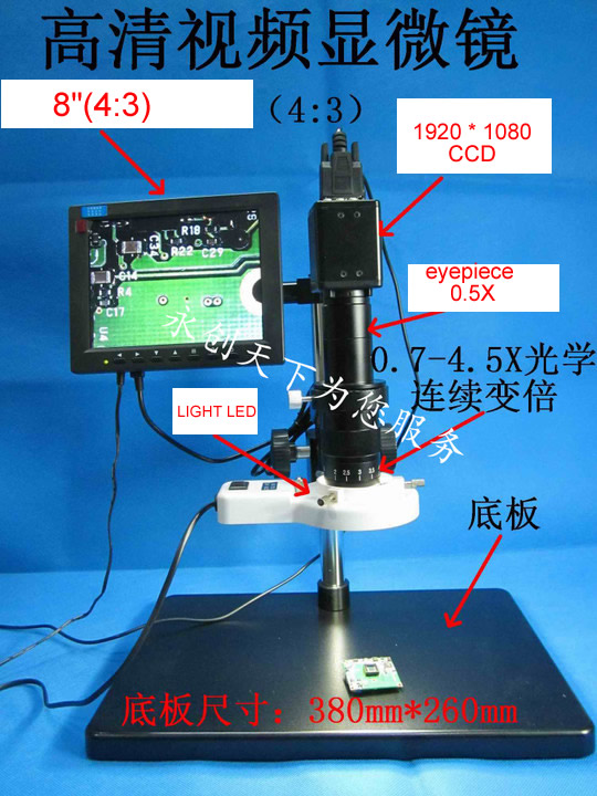 ectronic video microscope HD 1080P VGA output signal, high-definition CCD VGA connection.